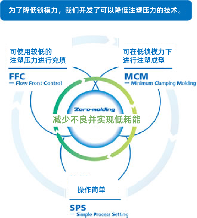 由锁模相关技术MCM、充填相关技术FFC,以及轻松操作这些技术的系统SPS这3项关键要素构成。