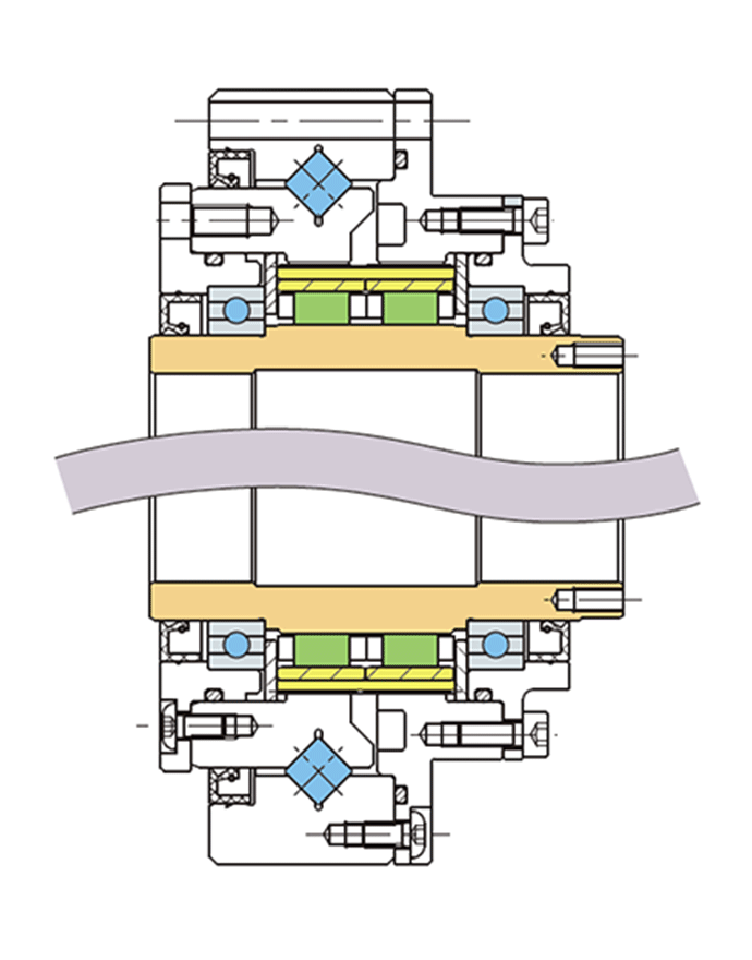 采用油封结构,填充润滑脂,使用轴承支撑高速轴,方便组装。另外,高速轴的孔径较大,可将电缆和轴等穿过其中。